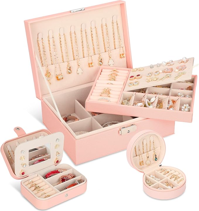 - 【Great Gift Choice】: Each elegant and functional designed jewelry box showcases your jewelry in a neat and stylish way. No more messy, damage or misplace, elegant pink make your dresser more beautiful. Gift for Birthday, valentine’s day, mother’s day, christmas, wedding, wedding anniversary and more! A lovely life-time belonging for ladies of all ages.