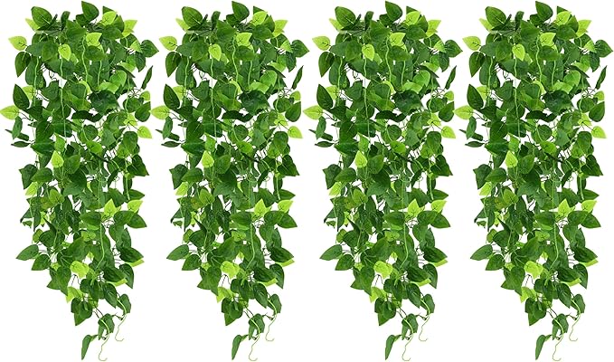 - [Package includes] 4pcs of green artificial hanging plants, and the length of each artificially hanging plants is approx. 2.9ft. Each green leaf has many stems that make it look very vivid and three-dimensional.