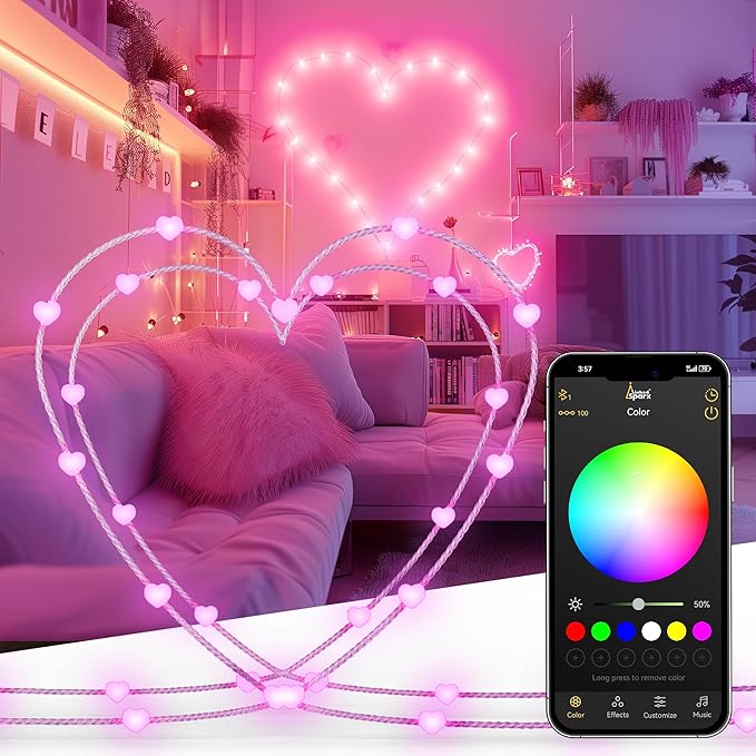 - Group Controlled: Brizled smart heart string lights offer the ability to achieve group control, maxing up to 800 LEDs of lights simultaneously. Whether you want to create a synchronized light show across different areas or achieve sequential effects for an immersive experience, our smart lights bring your vision to life. NOTE: These Lights Are NOT Connectable; Each Strand Needs to Plug Power Individually.