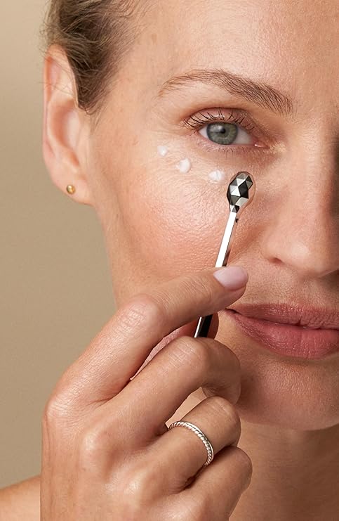 - Cooling Platinum-Coated Eye Massage Tool is weighted to ensure the ideal gentle pressure for the delicate eye area. The unique multi-faceted design provides micro-stimulation to the delicate eye-area skin