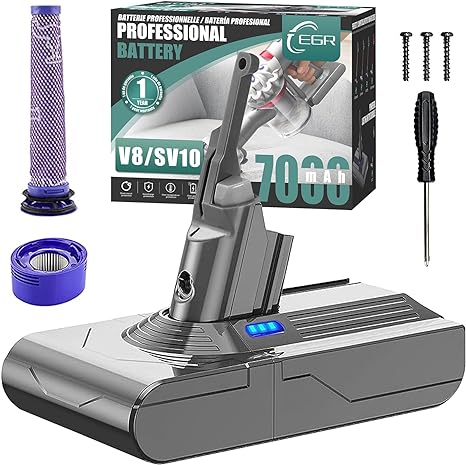 EGR Upgraded 7000mAh V8 Battery Replacement Compatible with Dyson V8 Animal Battery Replacement V8 Absolute V8 Motorhead V8 Fluffy SV10 Carbon Fiber Vacuum Cleaner 2 Filters and 3 Screws Included