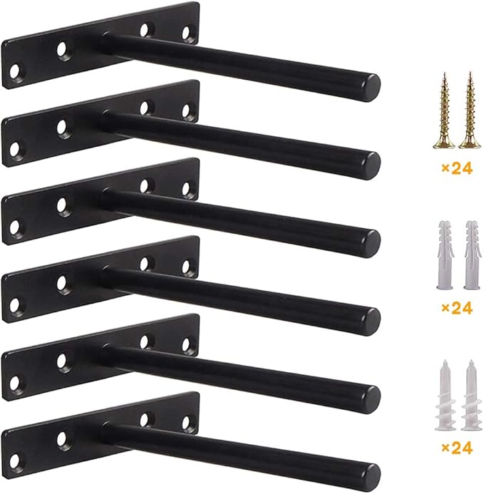 - Easy Installation – No special skills are required to mount these floating shelf brackets on the wall. Included are 24 attachable screws, 24 drywall anchors,24 brick concrete anchors that fit very nice and sturdy to keep your floating shelf brackets perfect