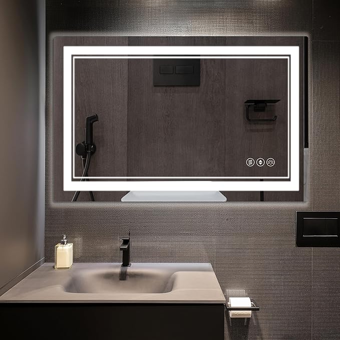 43″x 30″ LED Bathroom Mirror with Front and Backlight, Bathroom Vanity Mirror with 3 Color Adjustable, Stepless Dimmable Light, Anti-Fog, Memory Function, Vanity Mirror for Wall(Horizontal/Vertical).