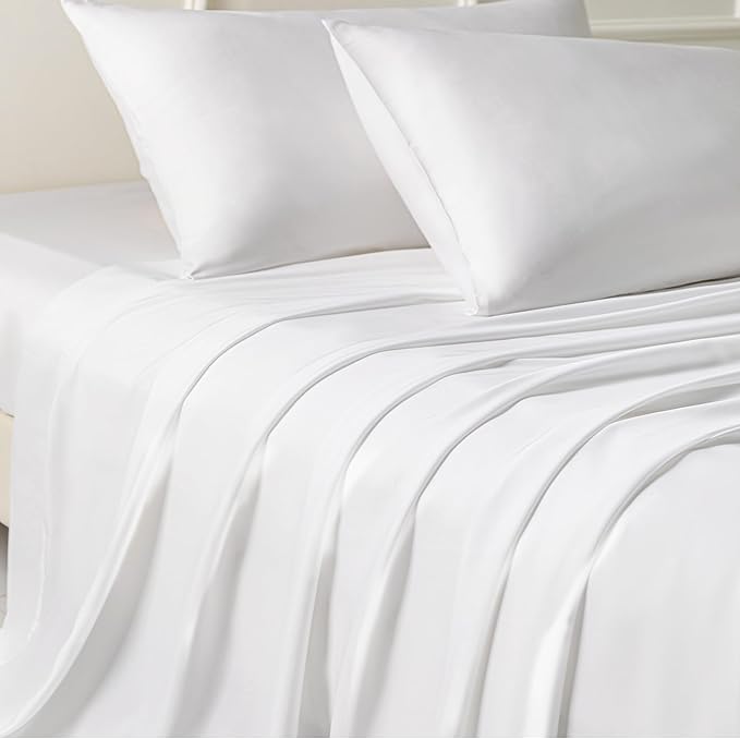 - 【Package Contains】: 1 Pcs 96″ * 105″ Flat Sheet, 1 Pcs 60″ * 80″ Fitted Sheet with 16″ Deep Pocket, 2 Pcs 30″ * 20″ Pillowcases. The white bedding sheet set is packed in a reusable fabric bag, easy to store when not in use. A distinctive festival gift or housewarming gift for parents or friends. Bring the comfortable sleeping environment for your lover.