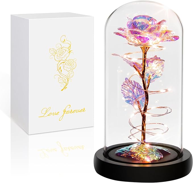 - Birthday Gifts For Women,I Love You Gifts For Her: Valentines day rose gifts color change follow different angles and light.The color of rainbow rose flower in a glass dome will change follow different angles and light.Gold, pink,Colorful and other different color changes give her a romantic and warm valentines gift for her mom girlfriend wife mom women mother.