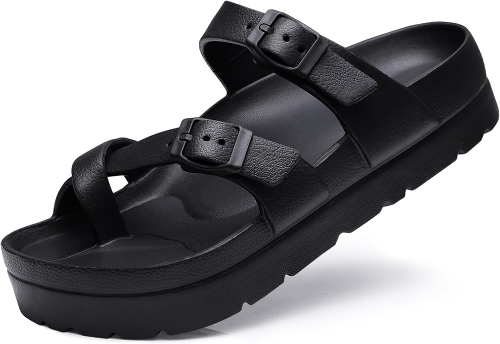 - 【Summer Essential Sandal】Upper features stylish double buckle adjustable straps for a stylish and classic exterior and very fit. The ultra-thick platform visually elongates leg lines to introduce versatile styles